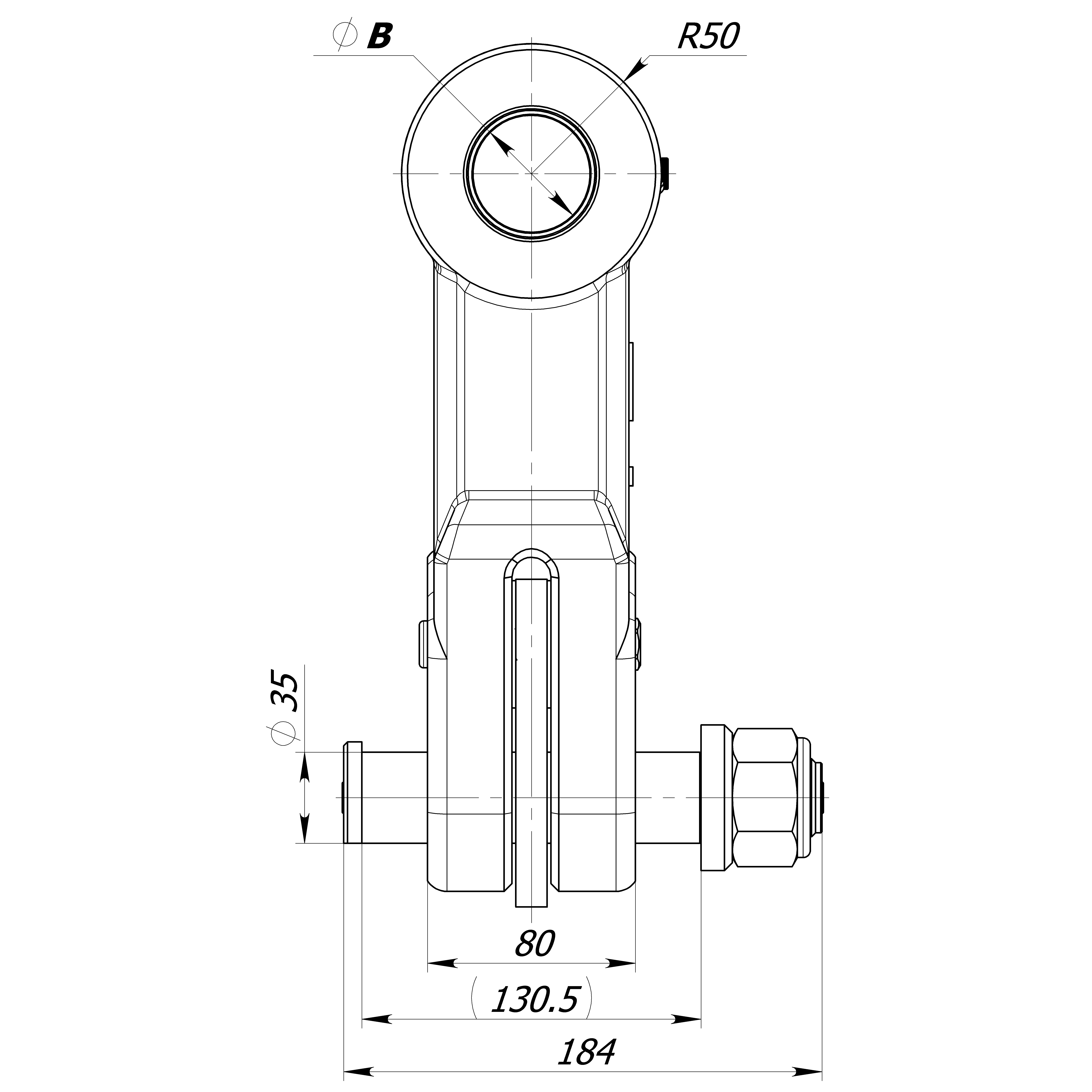 - Aufnahmebolzen Oben "B" : 25mm/ 30mm/ 35mm/ 40mm/ 45mm